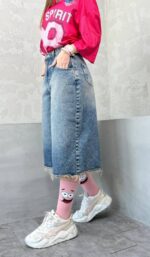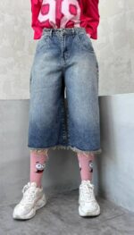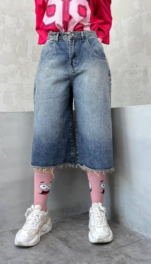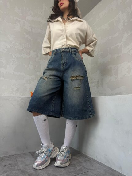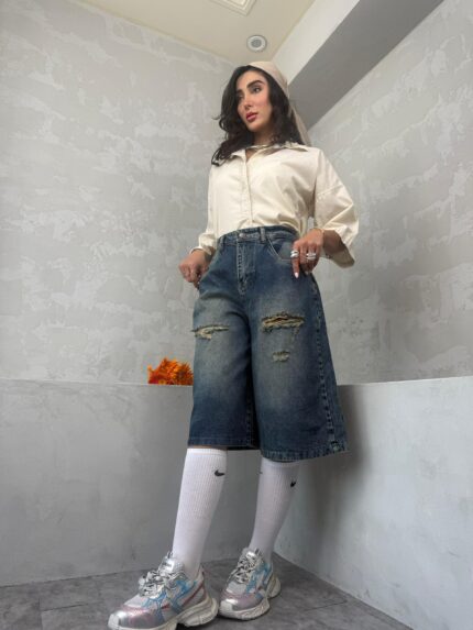شلوارک آبی تیره پایین ریش کد 4045