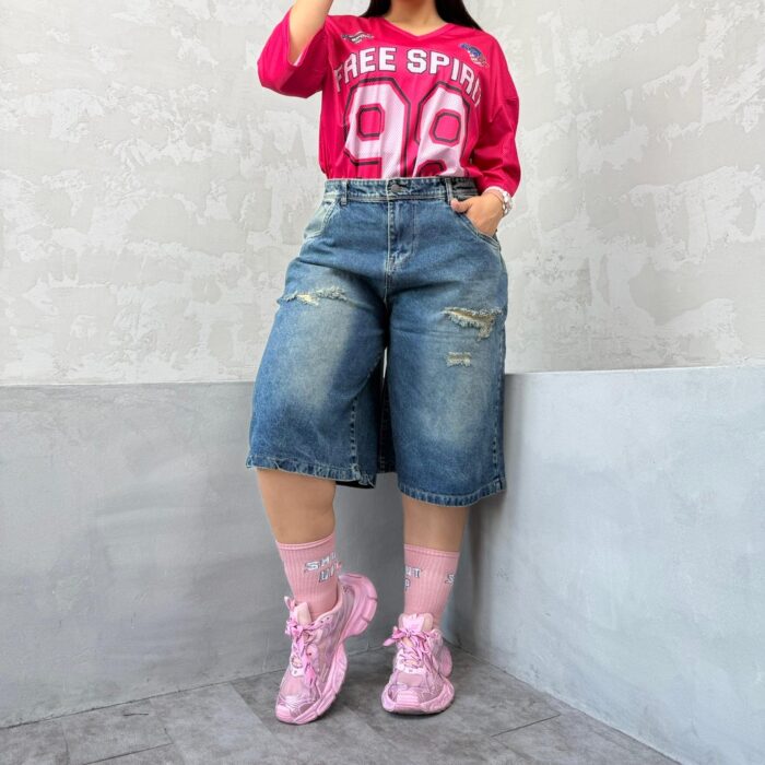 شلوار سوپر بگ خنج دار آبی روشن کد 4049