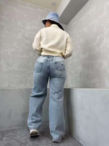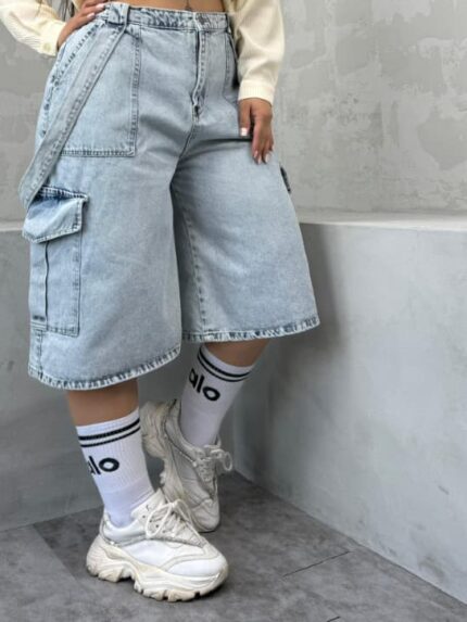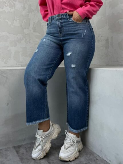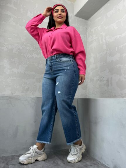 شلوار نیم بگ آبی تیره زاپدار کد 4095