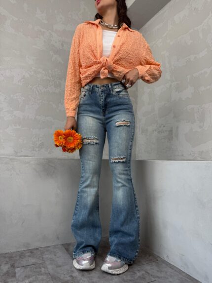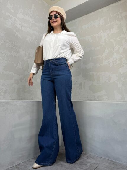 شلوار نیم بگ آبی تیره خوشرنگ کد 4089