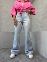 شلوار بگ بوتکات ابی یخی کد 3151