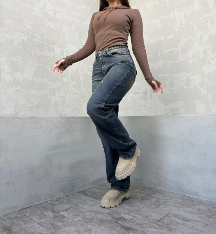 شلوار رگولار آبی تیره خنج دار کد 4025