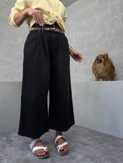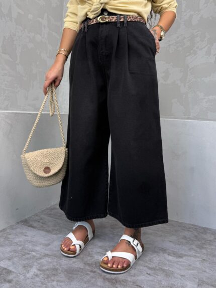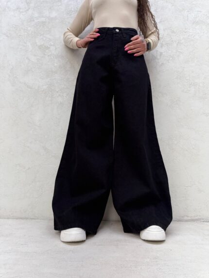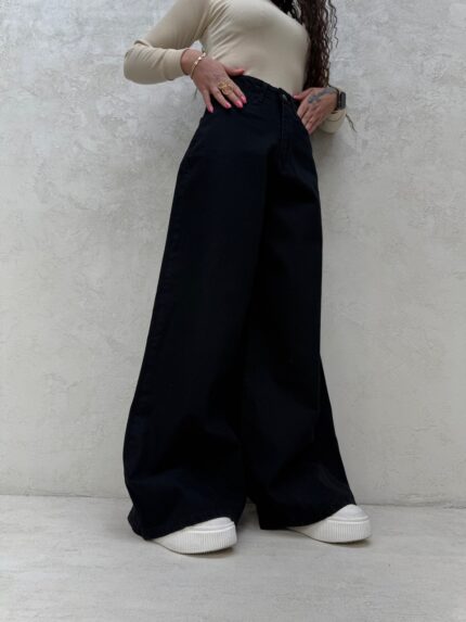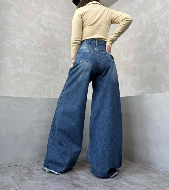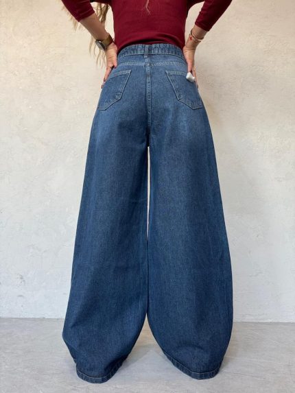 شلوار سوپر بگ آبی تیره خنج دار کد 4091