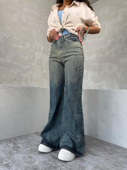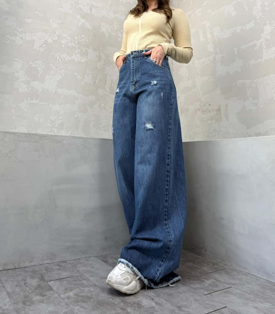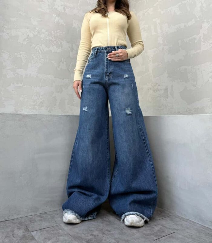 شلوار بگ بوتکات آبی گازوئیلی کد 4092