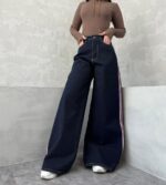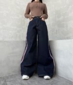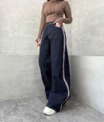 شلوار سوپر بگ ذغالی بغل خط قرمز کد محصول : ۴۱۳۰
