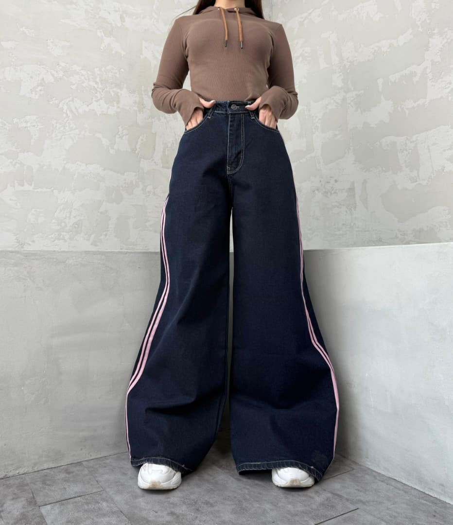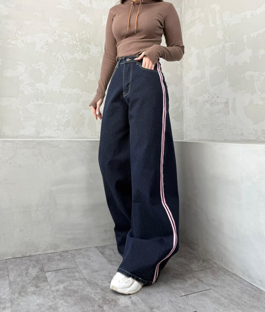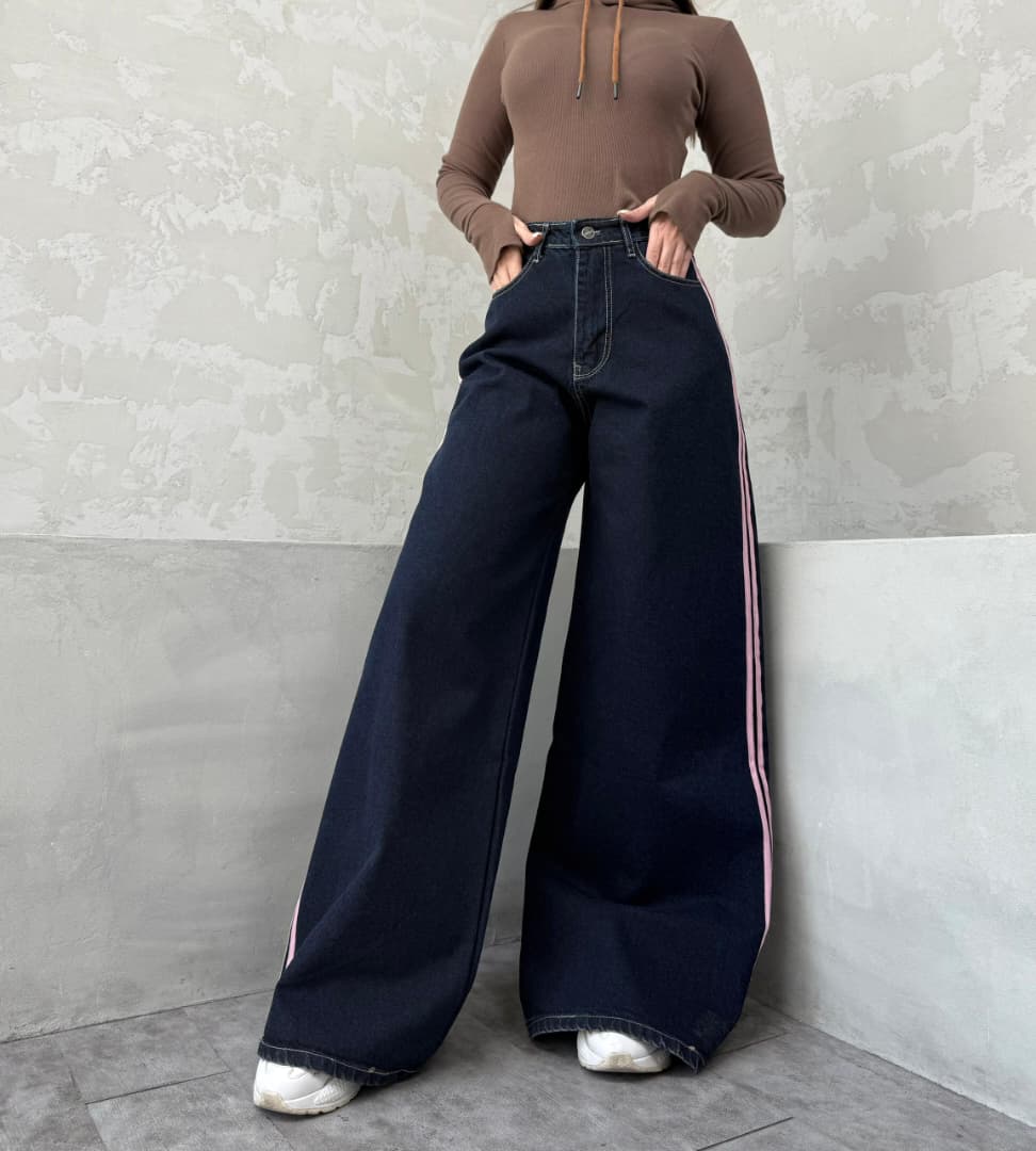شلوار سوپر بگ خام شوربغل خط صورتی کد محصول : ۴۱۲۹