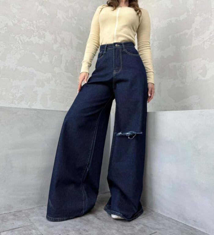شلوار سوپر بگ خام شور زانو زاپ کد 4082