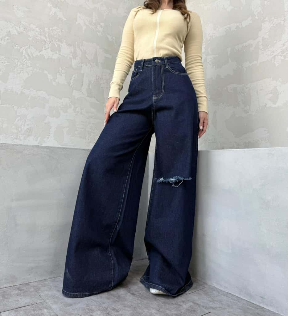 شلوار واید بگ ذغالی کد 4083