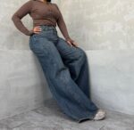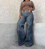 شلوار سوپر بگ خنج دار آبی گازوئیلی کد 4056