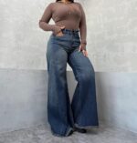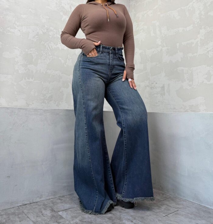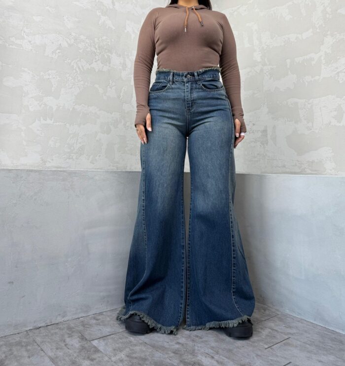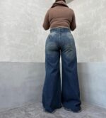 شلوار واید بگ آبی تیره خنج دار کد 4029
