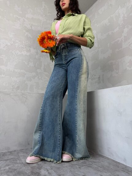 شلوار نیم بگ آبی تیره خوشرنگ کد 4075