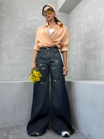 شلوار شافل گاروئیلی خنج دار کد 4051