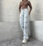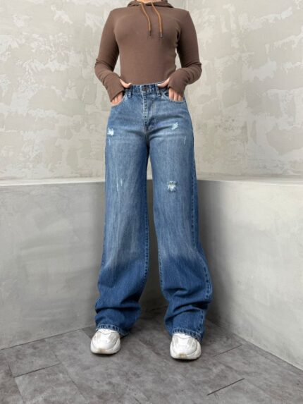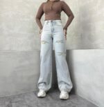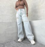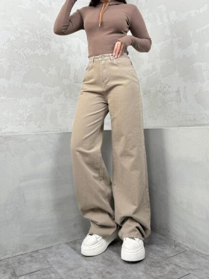 شلوار نیم بگ روشن راسته طرح دار کد ۴۱۱۷