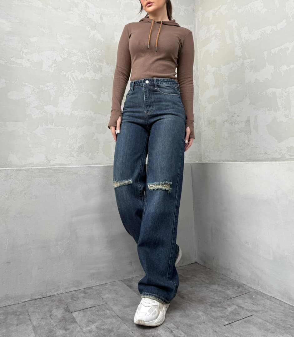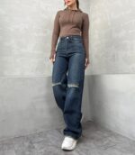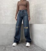 شلوار بگ بوتکات زاپدار آبی تیره کد محصول : ۴۱۴۴